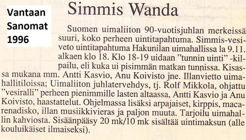 20 vuotta toiminnan aloituksen jälkeen Simmis Wanda auditoitiin vuonna 2015 Sinettiseuraksi. Sinetin luovutti seuran 20-vuotis juhlagaalassa Uimaliiton puheenjohtaja Sami Wahlman.